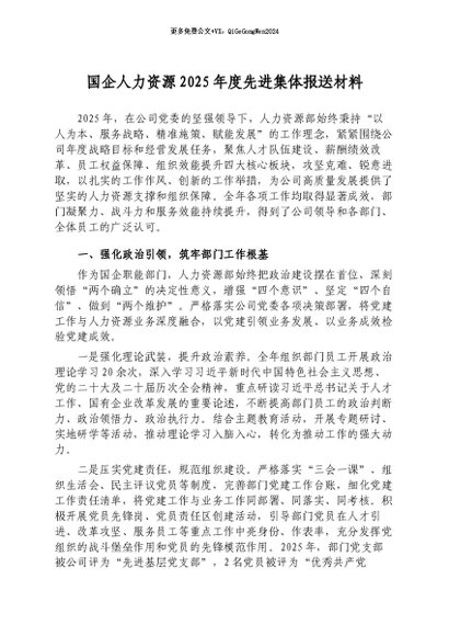 / 【七哥公文】2026年:国企人力资源2025年度先进集体报送材料+更多免费公文+VX:QiGeGongWen2024