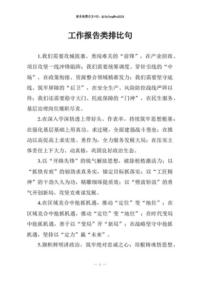 / 【七哥公文】2026年:工作报告类排比句+更多免费公文+VX:QiGeGongWen2024
