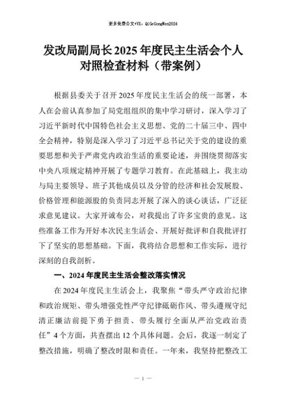【七哥公文】2026年:发改局副局长2025年度民主生活会个人对照检查材料(带案例)+更多免费公文+VX:QiGeGongWen2024