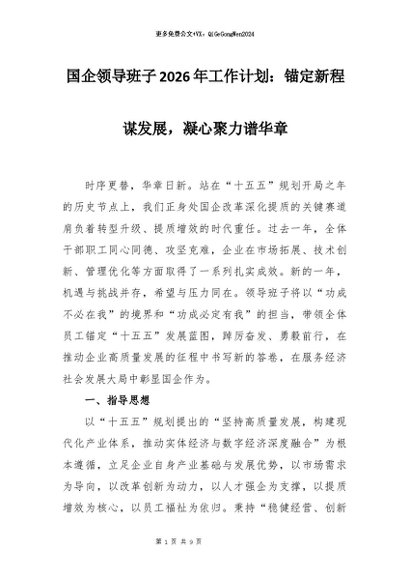 【七哥公文】2026年:国企领导班子2026年工作计划::锚定新程谋发展,凝心聚力谱华章+更多免费公文+VX:QiGeGongWen2024
