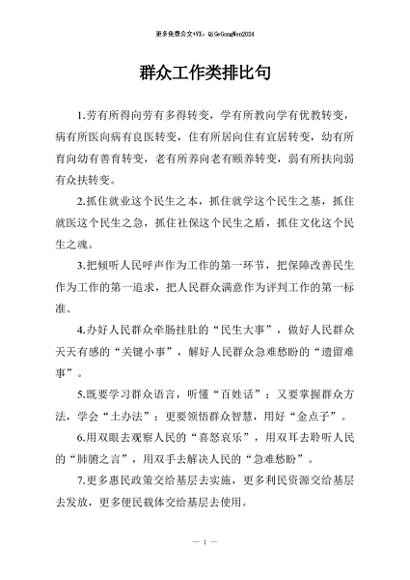 【七哥公文】2026年:群众工作类排比句+更多免费公文+VX:QiGeGongWen2024
