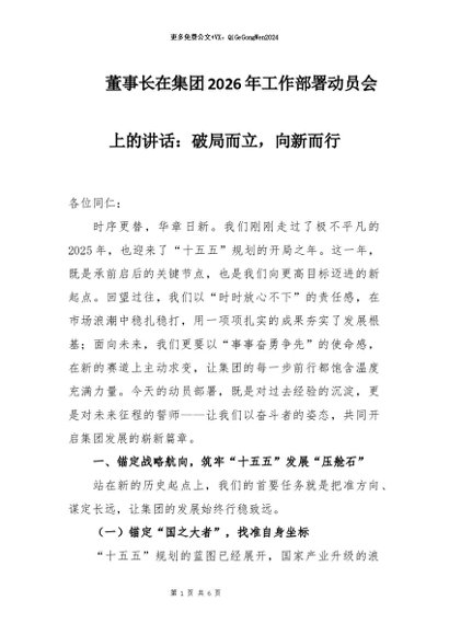 【七哥公文】2026年:董事长在集团2026年工作部署动员会上的讲话:破局而立,向新而行+更多免费公文+VX:QiGeGongWen2024