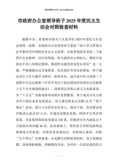 【七哥公文】2026年:市政府办公室领导班子2025年度民主生活会对照检查材料+更多免费公文+VX:QiGeGongWen2024