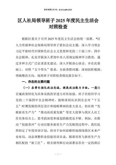 / 【七哥公文】2026年:区人社局领导班子2025年度民主生活会对照检查+更多免费公文+VX:QiGeGongWen2024
