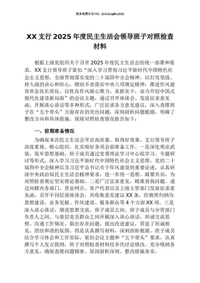 【七哥公文】2026年:XX支行2025年度民主生活会领导班子对照检查材料+更多免费公文+VX:QiGeGongWen2024