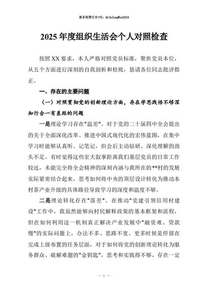 / 【七哥公文】2026年:2025年度组织生活会个人对照检查+更多免费公文+VX:QiGeGongWen2024