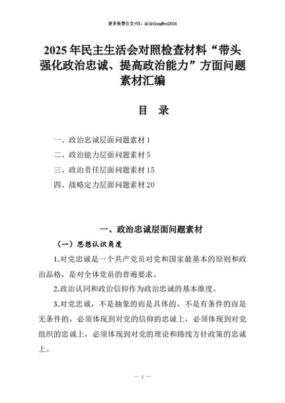 【七哥公文】2026年:2025年民主生活会对照检查材料“带头强化政治忠诚、提高政治能力”方面问题素材汇编+更多免费公文+VX:QiGeGongWen2024