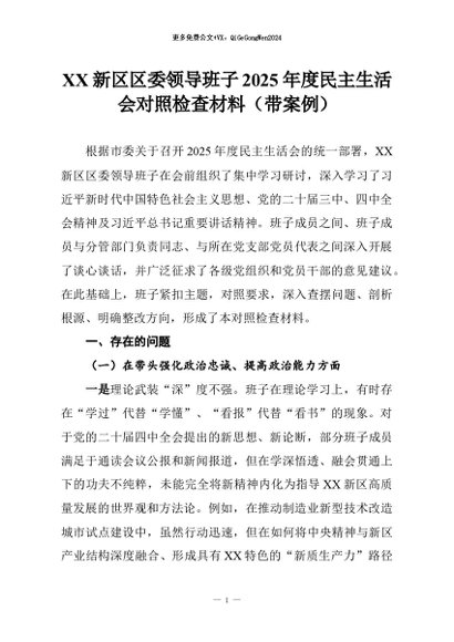 【七哥公文】2026年:XX新区区委领导班子2025年度民主生活会对照检查材料(带案例)+更多免费公文+VX:QiGeGongWen2024