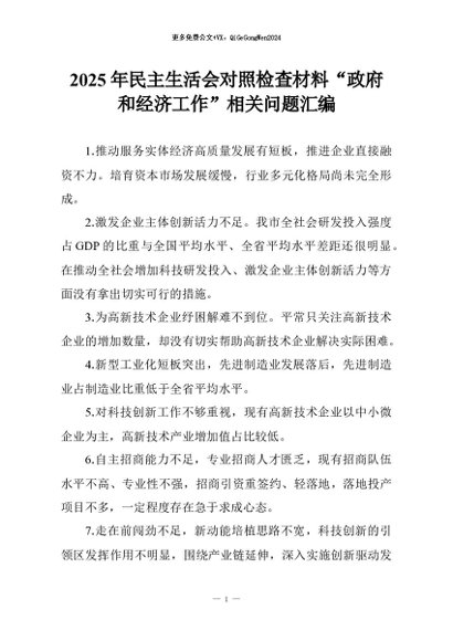 【七哥公文】2026年:2025年民主生活会对照检查材料“政府和经济工作”相关问题汇编+更多免费公文+VX:QiGeGongWen2024