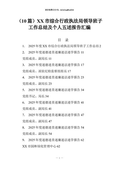 【七哥公文】2026年:(10篇)XX市综合行政执法局领导班子工作总结及个人五述报告汇编+更多免费公文+VX:QiGeGongWen2024