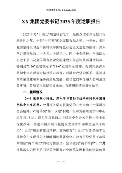 / 【七哥公文】2026年:XX集团党委书记2025年度述职报告+更多免费公文+VX:QiGeGongWen2024