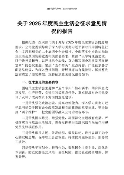 / 【七哥公文】2026年:关于2025年度民主生活会征求意见情况的报告+更多免费公文+VX:QiGeGongWen2024