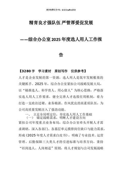 【七哥公文】2026年:精育良才强队伍 严管厚爱促发展——综合办公室2025年度选人用人工作报告+更多免费公文+VX:QiGeGongWen2024