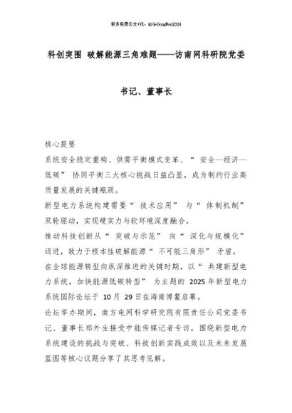 【七哥公文】2026年:科创突围 破解能源三角难题——访南网科研院党委书记、董事长_副本+更多免费公文+VX:QiGeGongWen2024