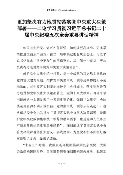 【七哥公文】2026年:更加坚决有力地贯彻落实党中央重大决策部署——二论学习贯彻习近平总书记二十届中央纪委五次全会重要讲话精神+更多免费公文+VX:QiGeGongWen2024