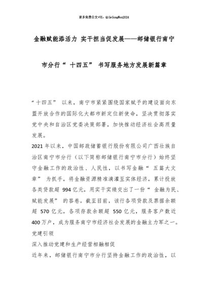 【七哥公文】2026年:金融赋能添活力 实干担当促发展——邮储银行南宁市分行“ 十四五” 书写服务地方发展新篇章_副本+更多免费公文+VX:QiGeGongWen2024