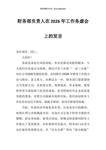 / 【七哥公文】2026年:财务部负责人在2026年工作务虚会上的发言+更多免费公文+VX:QiGeGongWen2024