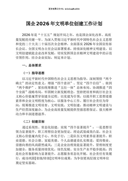/ 【七哥公文】2026年:国企2026年文明单位创建工作计划+更多免费公文+VX:QiGeGongWen2024