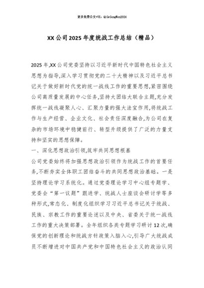 / 【七哥公文】2026年:XX公司2025年度统战工作总结(精品)_副本+更多免费公文+VX:QiGeGongWen2024