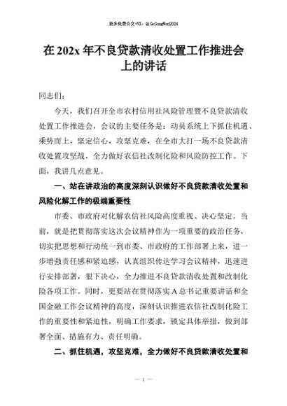 / 【七哥公文】2026年:在202x年不良贷款清收处置工作推进会上的讲话+更多免费公文+VX:QiGeGongWen2024