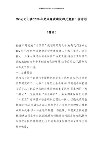 【七哥公文】2026年:XX公司纪委2026年党风廉政建设和反腐败工作计划(精品)_副本+更多免费公文+VX:QiGeGongWen2024