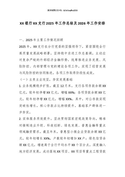 【七哥公文】2026年:XX银行XX支行2025年工作总结及2026年工作安排_副本+更多免费公文+VX:QiGeGongWen2024