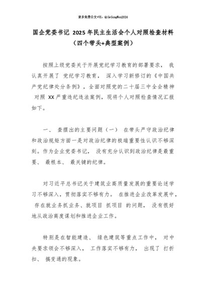 【七哥公文】2026年:国企党委书记 2025 年民主生活会个人对照检查材料(四个带头+典型案例)_副本+更多免费公文+VX:QiGeGongWen2024