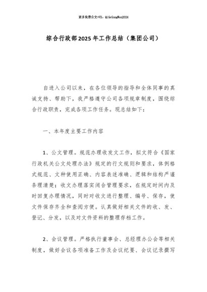 / 【七哥公文】2026年:综合行政部2025年工作总结(集团公司)+更多免费公文+VX:QiGeGongWen2024