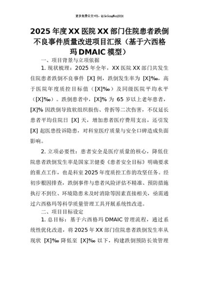 【七哥公文】2026年:2025年度XX医院XX部门住院患者跌倒不良事件质量改进项目汇报(基于六西格玛DMAIC模型)+更多免费公文+VX:QiGeGongWen2024