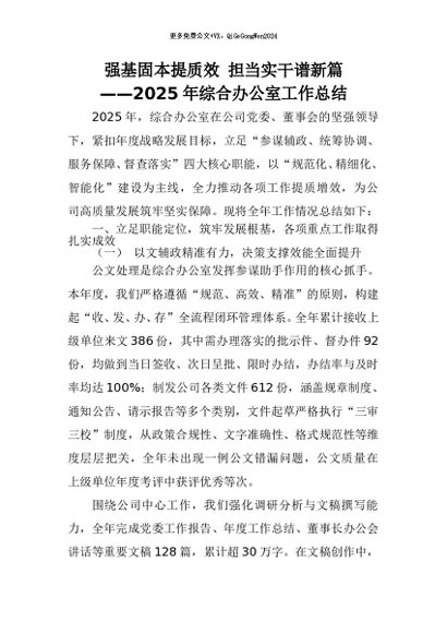 【七哥公文】2026年:强基固本提质效 担当实干谱新篇——2025年综合办公室工作总结+更多免费公文+VX:QiGeGongWen2024