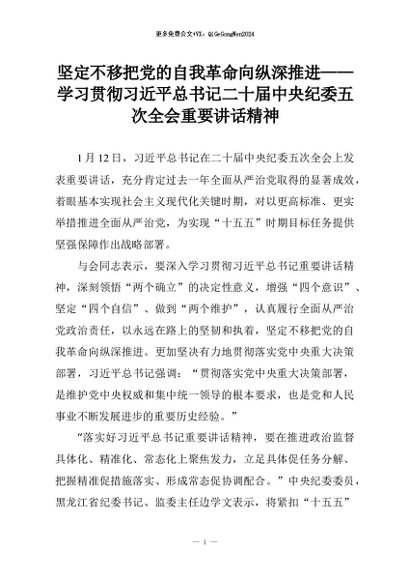 【七哥公文】2026年:坚定不移把党的自我革命向纵深推进——学习贯彻习近平总书记二十届中央纪委五次全会重要讲话精神+更多免费公文+VX:QiGeGongWen2024