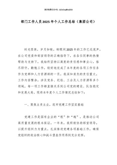 / 【七哥公文】2026年:部门工作人员2025年个人工作总结(集团公司)+更多免费公文+VX:QiGeGongWen2024