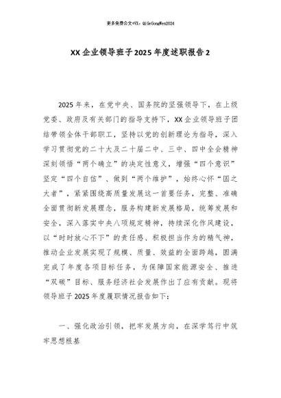 / 【七哥公文】2026年:XX企业领导班子2025年度述职报告2_副本+更多免费公文+VX:QiGeGongWen2024