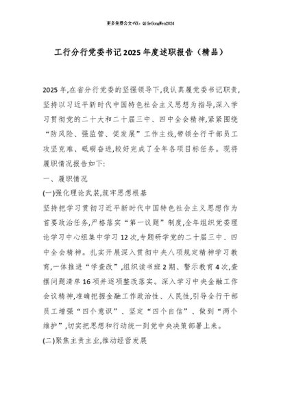 【七哥公文】2026年:工行分行党委书记2025年度述职报告(精品)_副本+更多免费公文+VX:QiGeGongWen2024