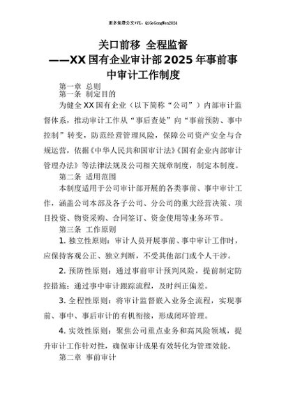 【七哥公文】2026年:关口前移 全程监督——XX国有企业审计部2025年事前事中审计工作制度+更多免费公文+VX:QiGeGongWen2024