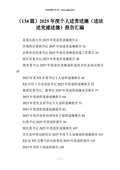 【七哥公文】2026年:(134篇)2025年度个人述责述廉(述法述党建述德)报告汇编+更多免费公文+VX:QiGeGongWen2024