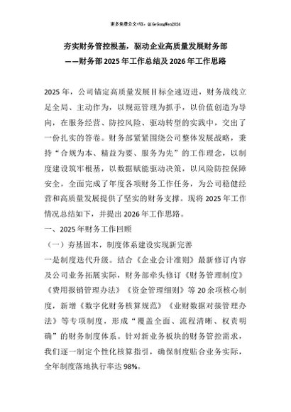 【七哥公文】2026年:夯实财务管控根基,驱动企业高质量发展财务部——财务部2025年工作总结及2026年工作思路+更多免费公文+VX:QiGeGongWen2024