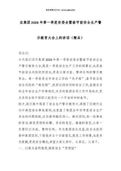 【七哥公文】2026年:在集团2026年第一季度安委会暨春节前安全生产警示教育大会上的讲话(精品)_副本+更多免费公文+VX:QiGeGongWen2024
