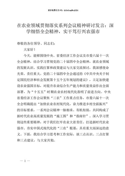 【七哥公文】2026年:在农业领域贯彻落实系列会议精神研讨发言:深学细悟全会精神,实干笃行兴农强市+更多免费公文+VX:QiGeGongWen2024