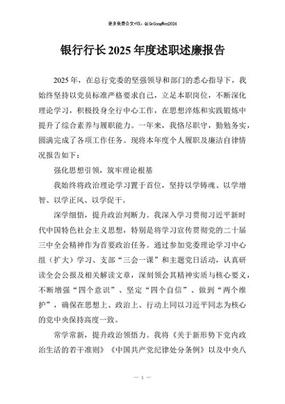 / 【七哥公文】2026年:银行行长2025年度述职述廉报告+更多免费公文+VX:QiGeGongWen2024