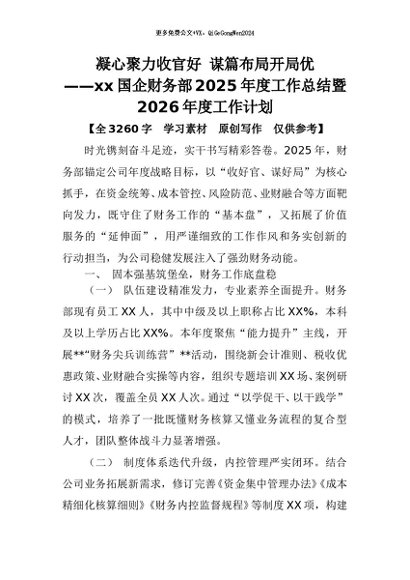 【七哥公文】2026年:凝心聚力收官好 谋篇布局开局优——xx国企财务部2025年度工作总结暨2026年度工作计划+更多免费公文+VX:QiGeGongWen2024
