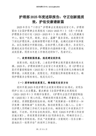 【七哥公文】2026年:护理部2025年度述职报告:守正创新提质效,护佑安康谱新篇+更多免费公文+VX:QiGeGongWen2024