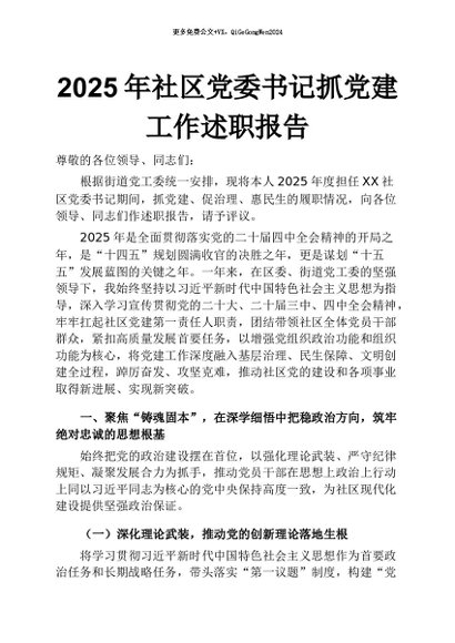 / 【七哥公文】2026年:2025年社区党委书记抓党建工作述职报告+更多免费公文+VX:QiGeGongWen2024