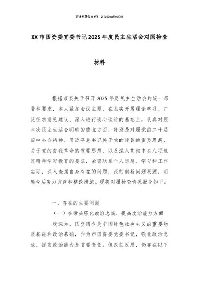 【七哥公文】2026年:XX市国资委党委书记2025年度民主生活会对照检查材料2_副本+更多免费公文+VX:QiGeGongWen2024