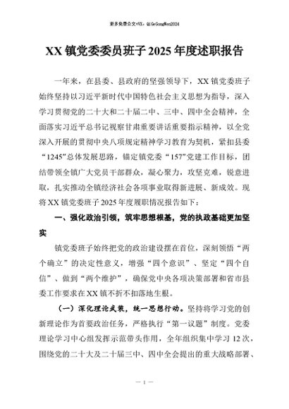 / 【七哥公文】2026年:XX镇党委委员班子2025年度述职报告+更多免费公文+VX:QiGeGongWen2024