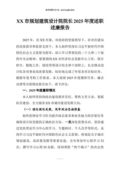 【七哥公文】2026年:XX市规划建筑设计院院长2025年度述职述廉报告+更多免费公文+VX:QiGeGongWen2024