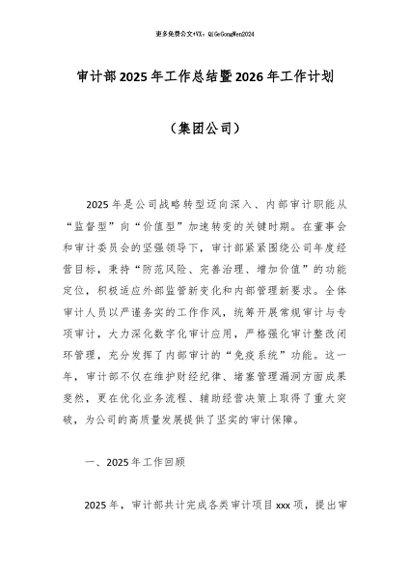 【七哥公文】2026年:审计部2025年工作总结暨2026年工作计划(集团公司)+更多免费公文+VX:QiGeGongWen2024