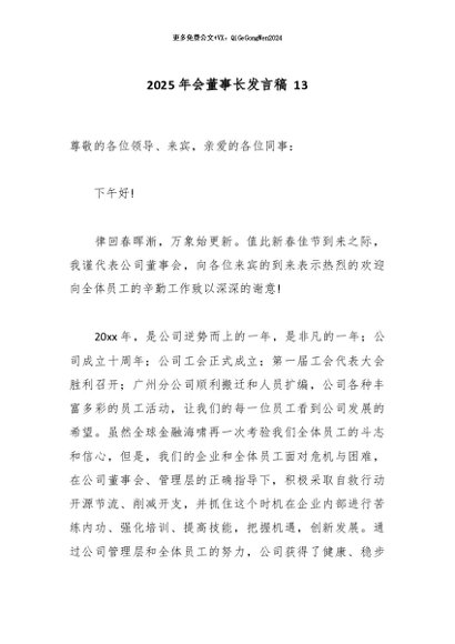 / 【七哥公文】2026年:2025年会董事长发言稿 13_副本+更多免费公文+VX:QiGeGongWen2024