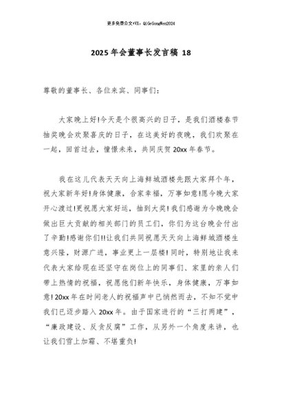 / 【七哥公文】2026年:2025年会董事长发言稿 18_副本+更多免费公文+VX:QiGeGongWen2024