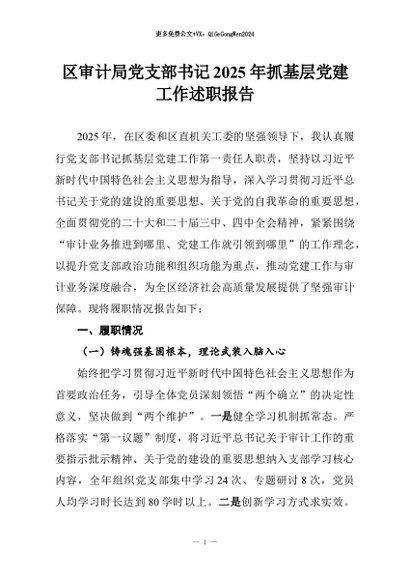【七哥公文】2026年:区审计局党支部书记2025年抓基层党建工作述职报告+更多免费公文+VX:QiGeGongWen2024